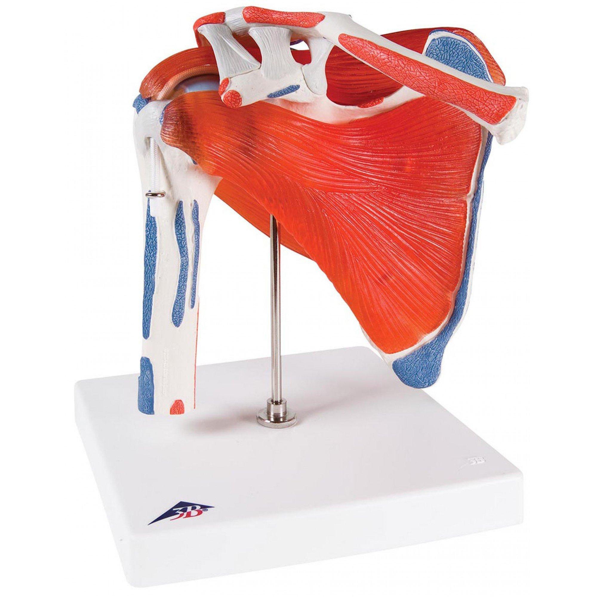 Anatomiskais pleca locītavas modelis sastāv no augšdelma kaula augšējās daļas, atslēgas kaula un lāpstiņas. Modelī redzams arī rotatoru manšetes muskulatūras attēlojums, kā arī pleca muskuļu sākuma un piestiprināšanās vietas, kas iezīmētas krāsās (sarkans = sākuma vieta, zils = piestiprināšanās vieta). Pleca muskuļi ir noņemami, kas ļauj detalizēti izpētīt anatomisko struktūru.