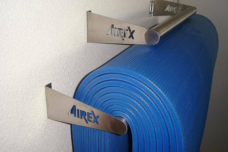 Stilīgs un praktisks risinājums Airex vingrošanas paklāju glabāšanai. Izturīgais sienas stiprināmais turētājs ir izgatavots no nerūsējoša tērauda un pieejams divos platumos.