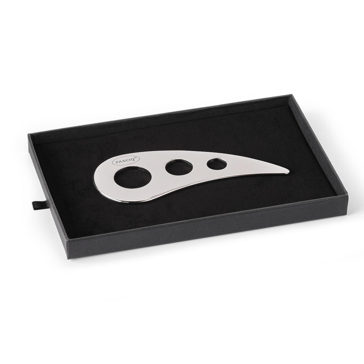Profesionāls IASTM (Instrument Assisted Soft Tissue Mobilization) rīks, paredzēts mīksto audu un trigerpunktu terapijai. Izgatavots no augstas kvalitātes medicīniskā nerūsējošā tērauda, nodrošinot maksimālu izturību, higiēnu un precīzu sajūtu darbā ar dažādiem audu slāņiem. FASCIQ® instrumenti samazina terapeita roku slodzi, padarot darbu ergonomiskāku un efektīvāku.