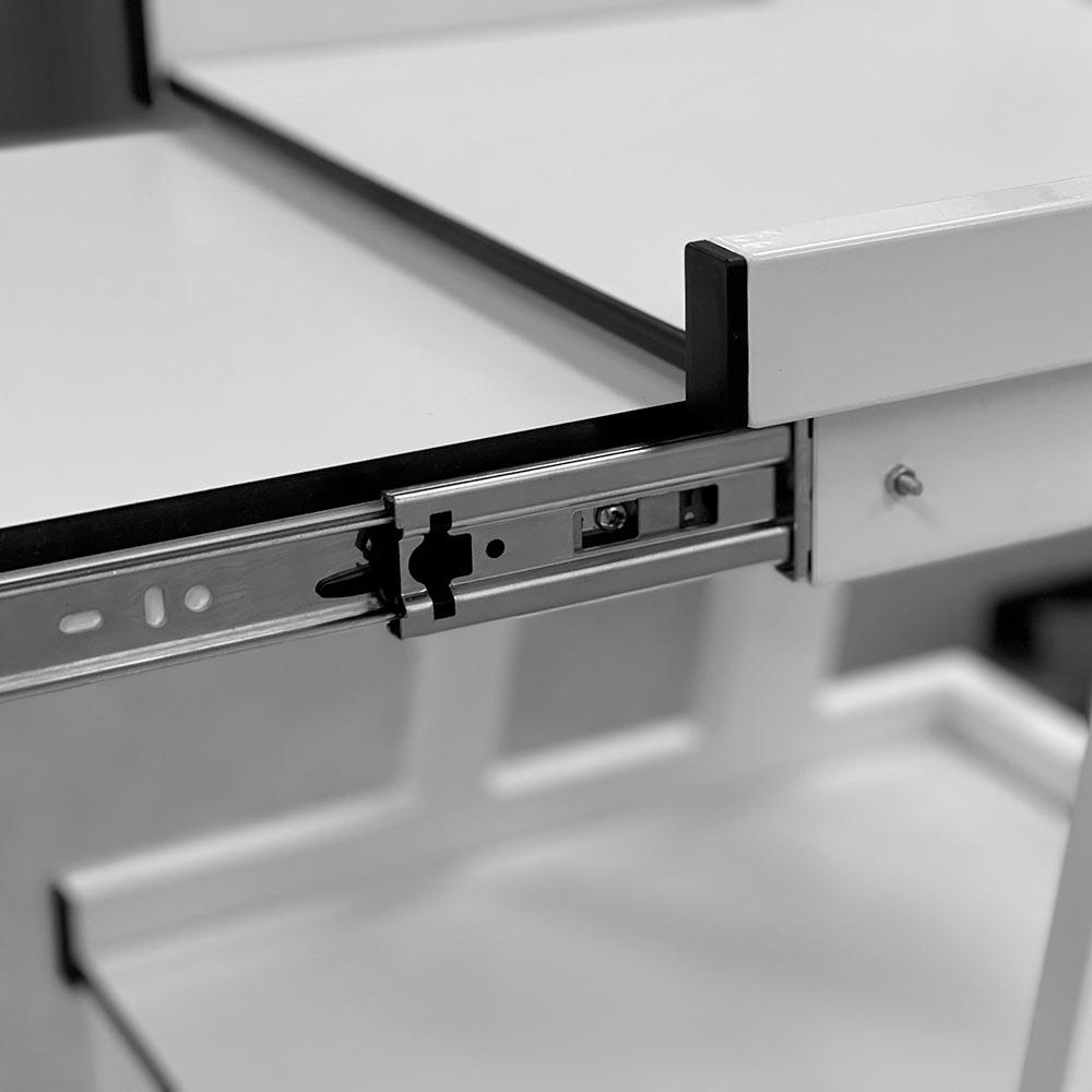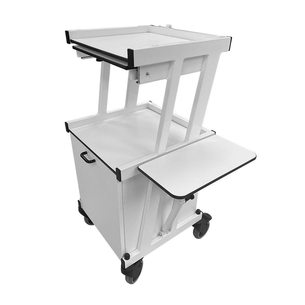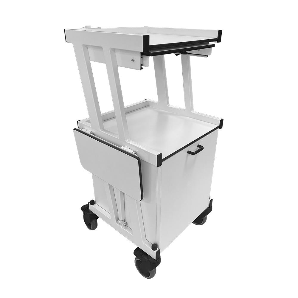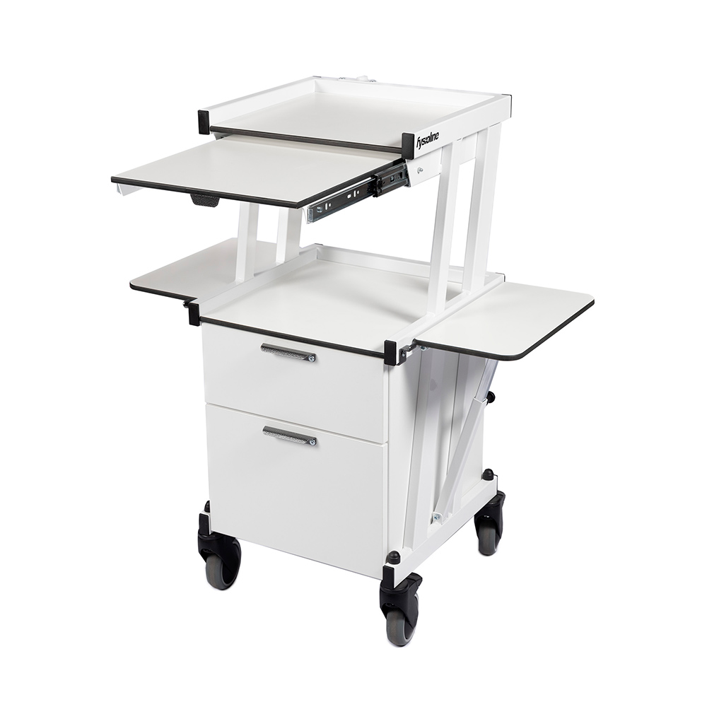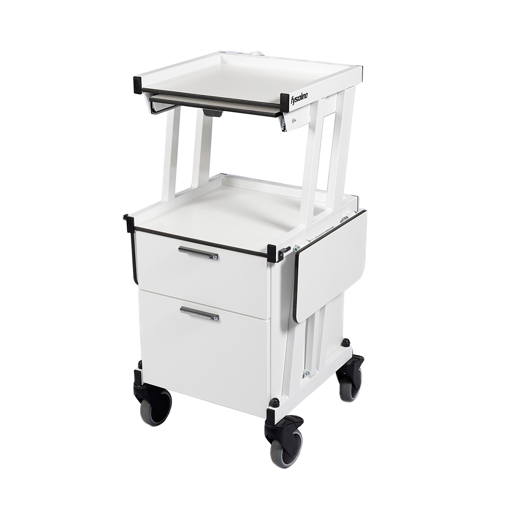 Izturīgi un kvalitatīvi piederumu ratiņi, kas ražoti Somijā Fysioline rūpnīcā. Ratiņiem ir divi līmeņi ar praktisku atvilktni, kā arī sānos izvietotas ērtas, uz abām pusēm grozāmas paliktņu virsmas. Pateicoties pārvietošanas riteņiem, ratiņus var viegli pārvietot, un visi riteņi ir aprīkoti ar fiksatoriem. Rāmis izgatavots no izturīga krāsota tērauda, virsmas – no dezinfekcijai izturīga augstspiediena lamināta.
