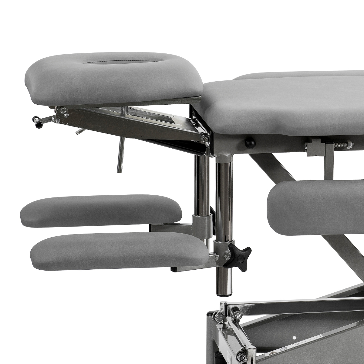 Papildaprīkojums masāžas galdiem – divdaļīgs sejas balsts ar dubulto eņģi, kas nodrošina nepārtrauktu augstuma regulāciju horizontālā pozīcijā un iespēju slīpināt, lai palielinātu klienta komfortu. Šī funkcija ļauj pielāgot balstu arī tad, ja terapija notiek klientam sēdus stāvoklī.