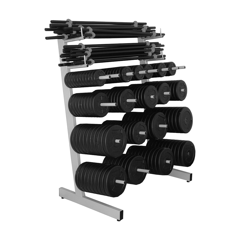 Ar šo statīvu iespējams ērti un kārtīgi uzglabāt svaru diskus un stieņus gan grupu nodarbībās, gan sporta zālē. Tas nodrošina inventāra sakārtotību un drošu lietošanu.