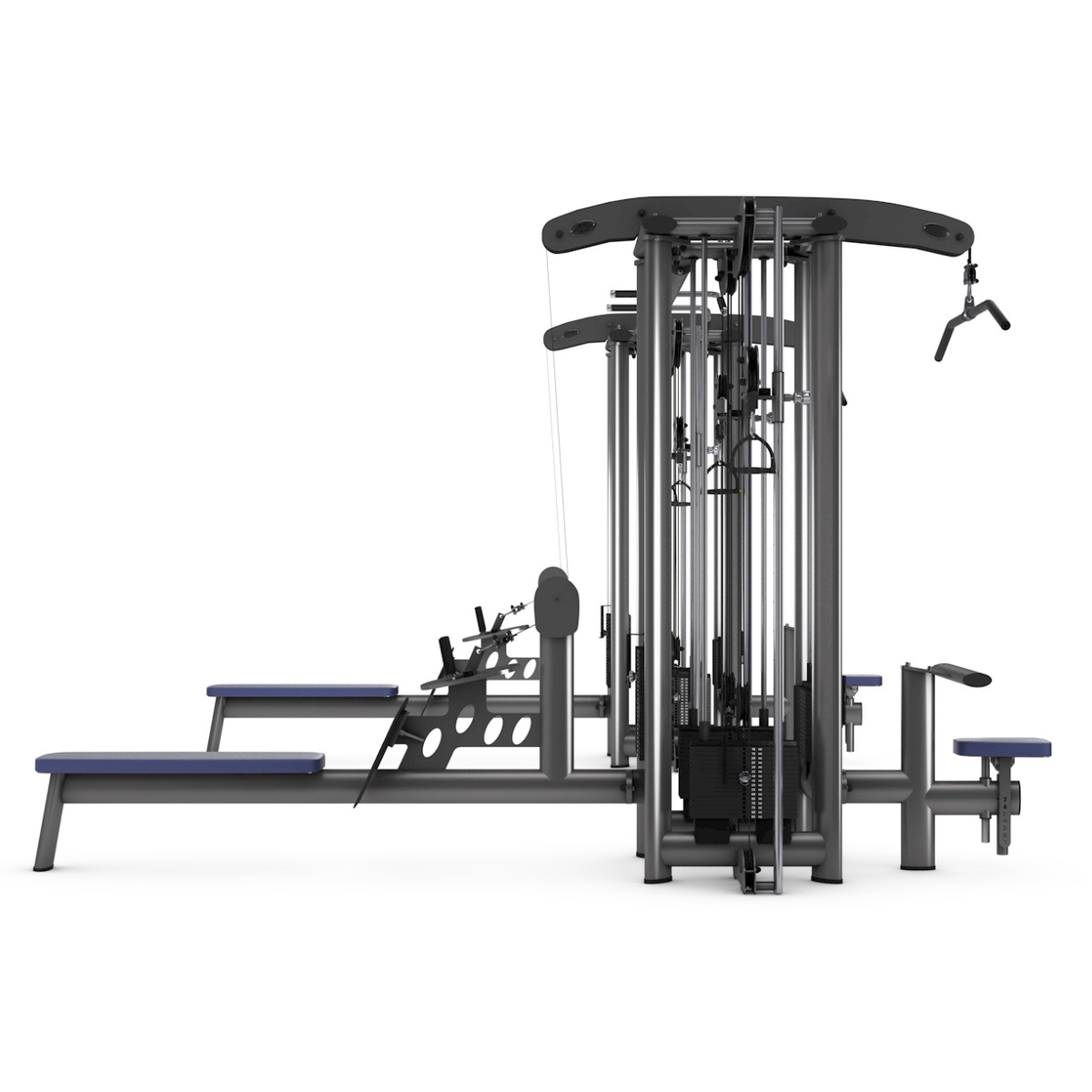 Šis 8-staciju kabeļu trenažieris ir ideāls daudzpusīgam treniņam. Lielais staciju skaits ļauj vienlaicīgi trenēties vairākiem lietotājiem, un trenažiera konfigurācija nodrošina dažādus vingrinājumus visām muskuļu grupām.