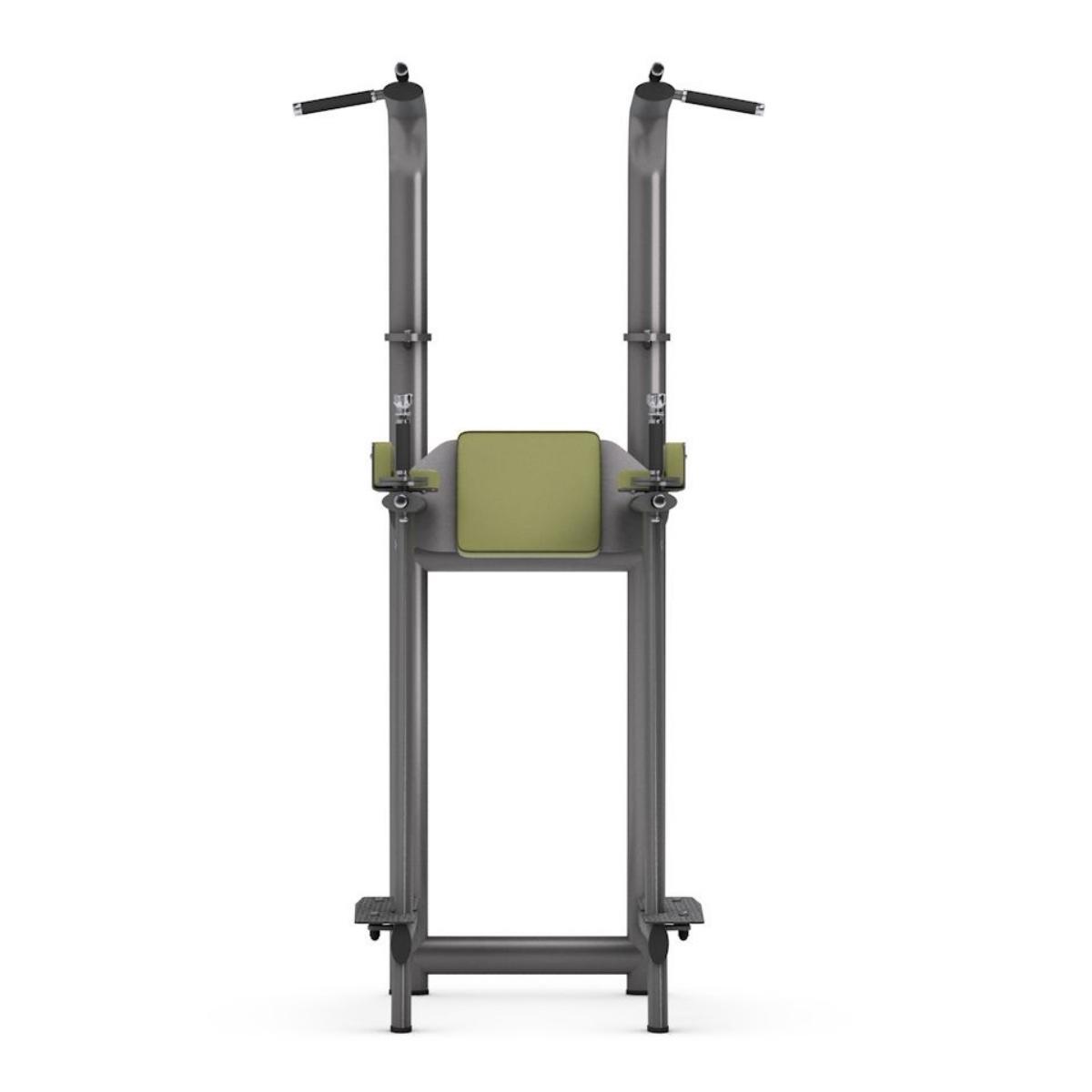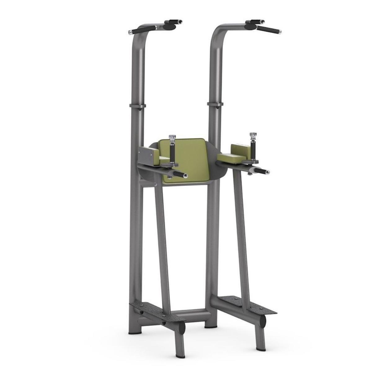 Gym80 Sygnum Basic sērijas ceļu atcelšanas un dipu trenažieris ļauj efektīvi trenēt vēdera muskulatūru, tricepsus un plecu joslu. Aprīkots ar ērtām roku atbalsta virsmām, muguras balstu un augšējo stieni dažādiem satvērieniem. Stabila un kompakta konstrukcija padara to par piemērotu izvēli gan profesionālām zālēm, gan mazākām treniņu telpām.