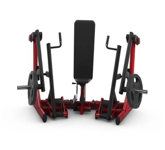 Horizontālās spiešanas trenažieris aprīkots ar augstumā regulējamu sēdekli un kāju atspiedu mehānismu, kas atvieglo sākuma pozīciju. Trenažieris paredzēts krūšu muskuļu un tricepsu efektīvai trenēšanai, nodrošinot dabisku kustību un stabilu ķermeņa pozīciju.