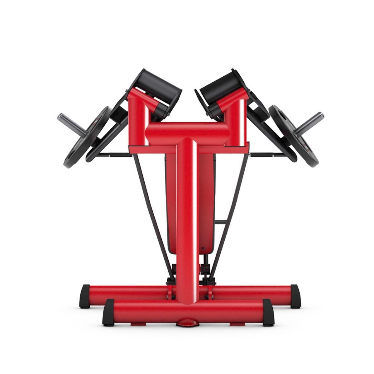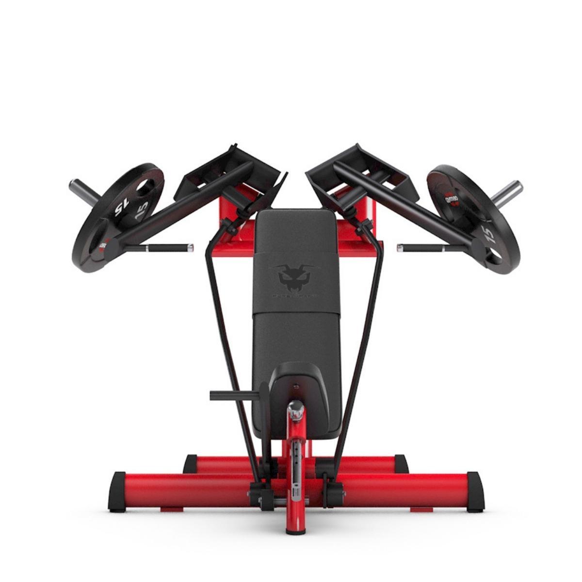 Slīpais spiešanas trenažieris ir ideāli piemērots krūšu muskuļu augšējās daļas attīstīšanai. Biomehāniski precīza kustību trajektorija, vairākas satvēriena iespējas un ērta sēdpozīcija nodrošina dabisku un efektīvu treniņu. Trenažierim ir integrēti svaru disku turētāji.