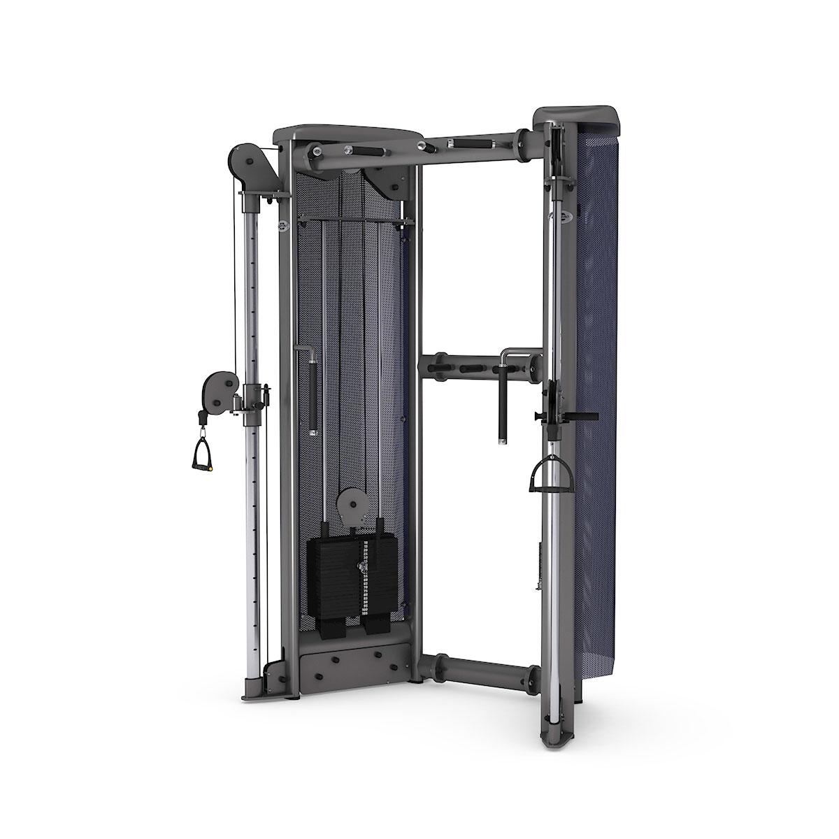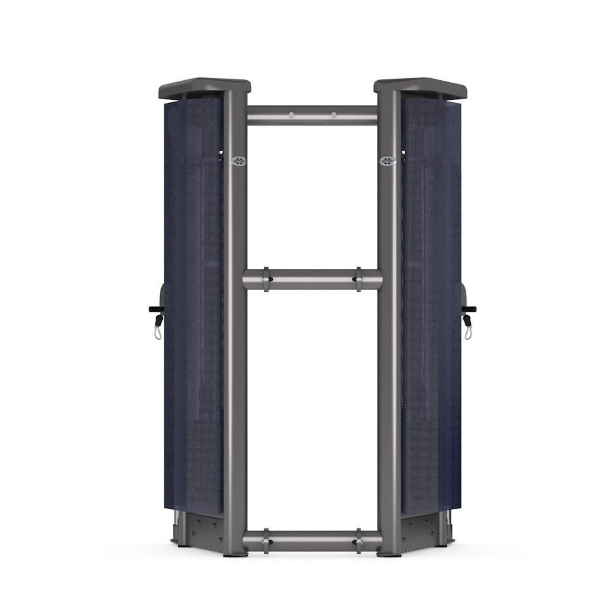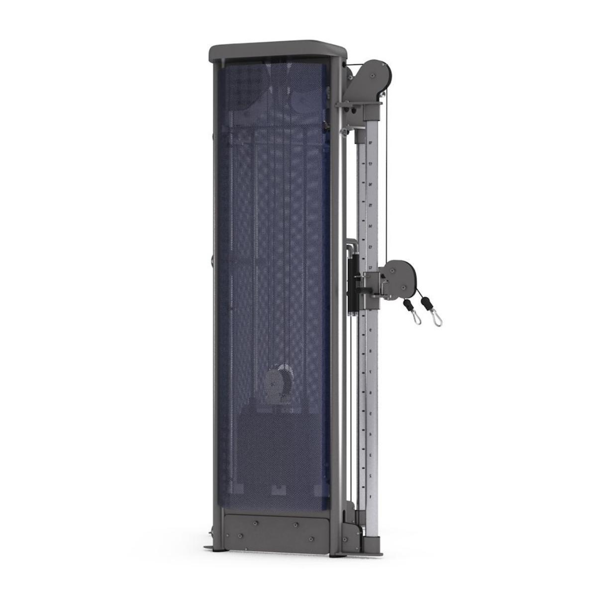 Gym80 regulējamā V kabeļu stacija ir aprīkota ar integrētiem pievilkšanās rokturiem un divām neatkarīgām svaru sistēmām, kas ļauj veikt plašu vingrinājumu klāstu augšējai ķermeņa daļai. Regulējamais augstums padara šo trenažieri īpaši daudzpusīgu un piemērotu dažādiem lietotājiem un treniņu mērķiem.