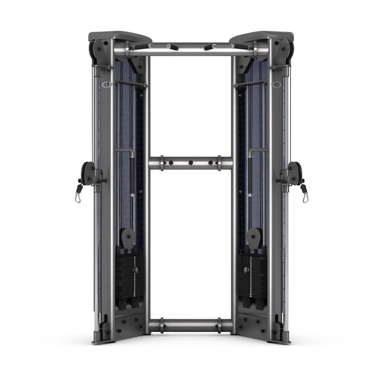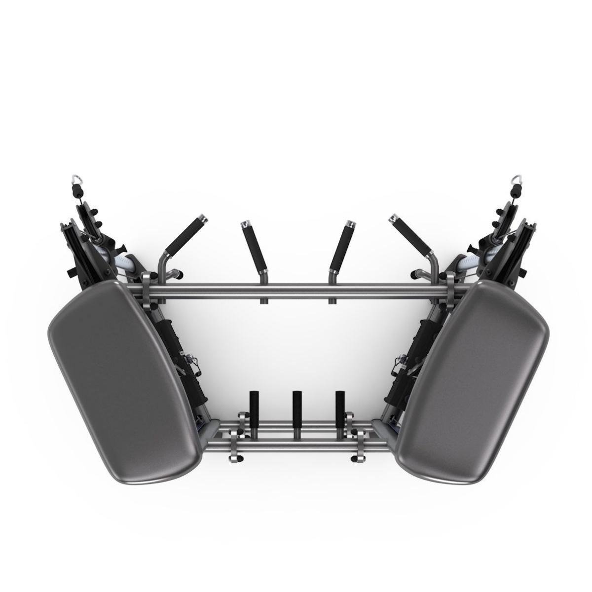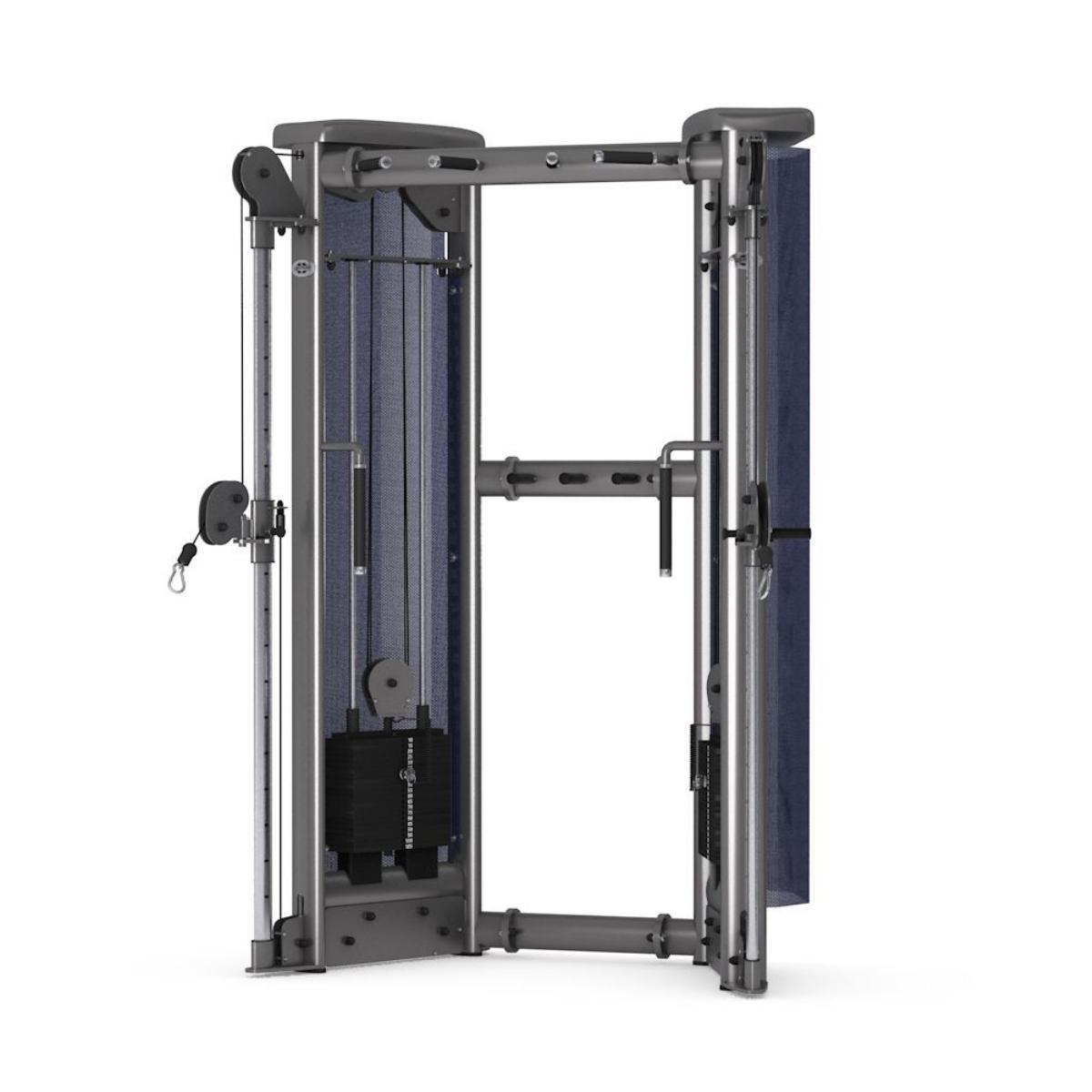 Gym80 regulējamā V kabeļu stacija ir aprīkota ar integrētiem pievilkšanās rokturiem un divām neatkarīgām svaru sistēmām, kas ļauj veikt plašu vingrinājumu klāstu augšējai ķermeņa daļai. Regulējamais augstums padara šo trenažieri īpaši daudzpusīgu un piemērotu dažādiem lietotājiem un treniņu mērķiem.