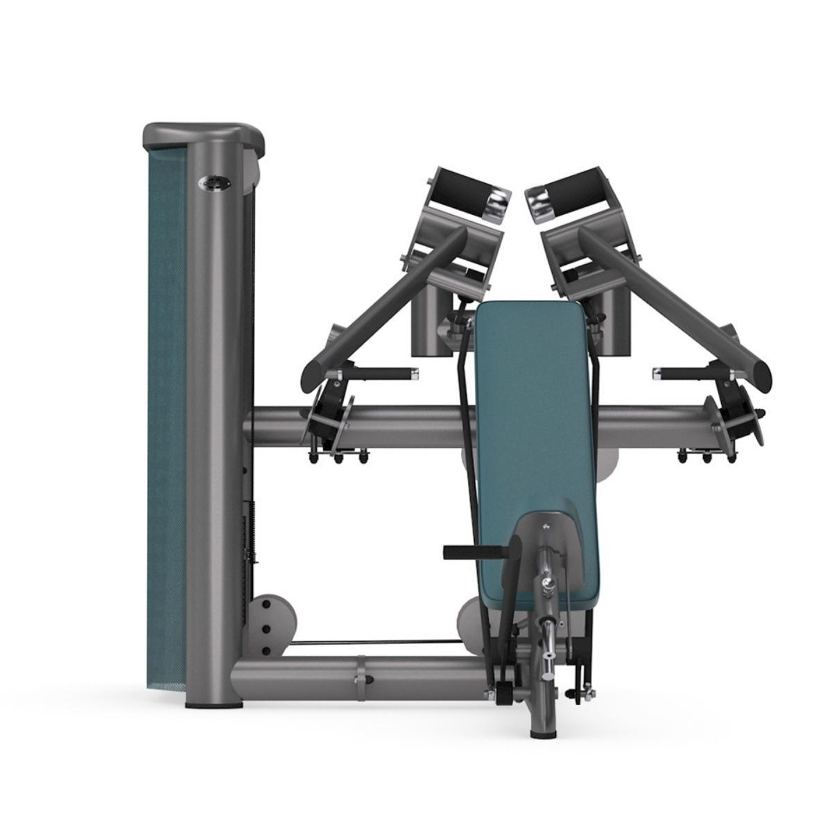 Gym80 Sygnum Dual slīpā spiešanas trenažieris paredzēts krūšu un tricepsu muskuļu stiprināšanai. Dual mehānisms nodrošina, ka katra roka kustas neatkarīgi, ļaujot kompensēt muskuļu disbalansu un uzlabot koordināciju. Trenažiera kustību trajektorija var būt gan sašaurinoša, gan paplašinoša atkarībā no vingrinājuma, tādējādi sniedzot dabiskāku kustību sajūtu, kas līdzinās brīvo svaru treniņam.