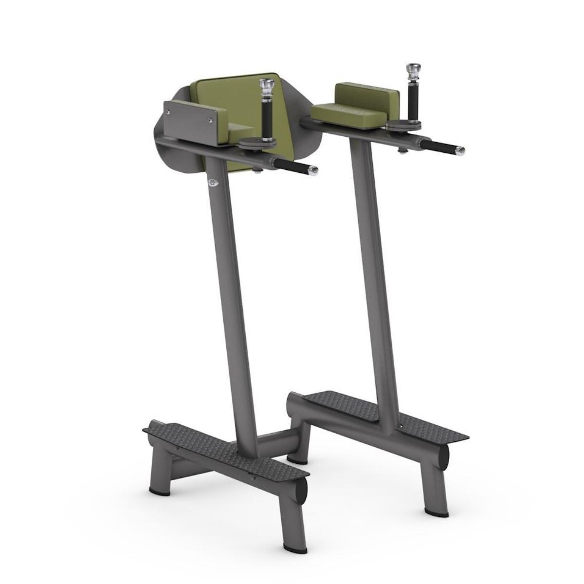Šī dippu un kāju pacelšanas stacija ir aprīkota ar ergonomiski veidotu atzveltni un integrētiem rokturiem, kas nodrošina stabilitāti un komfortu treniņa laikā.