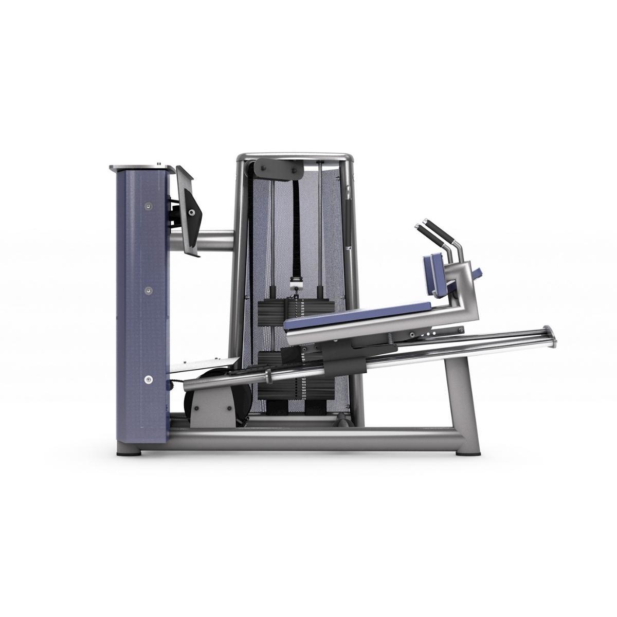 Leg press trenažieris aprīkots ar regulējamu atzveltni, kas ļauj izvēlēties sev piemērotāko treniņa pozīciju. Divi integrētie rokturi un plecu polsteri palīdz saglabāt stabilu un drošu ķermeņa novietojumu visa vingrinājuma laikā. Integrētā svaru sistēma nodrošina pietiekamu slodzi dažādu līmeņu lietotājiem.