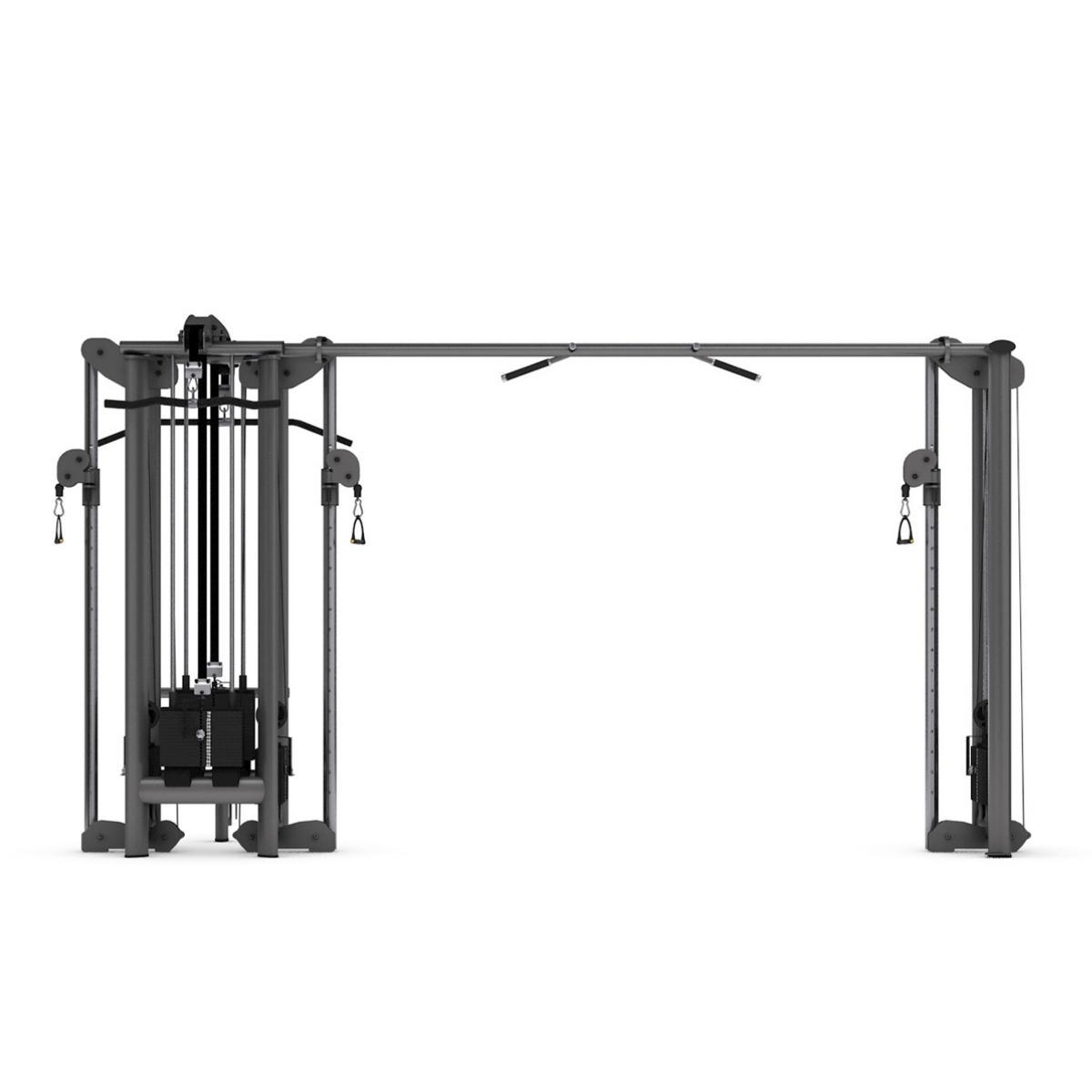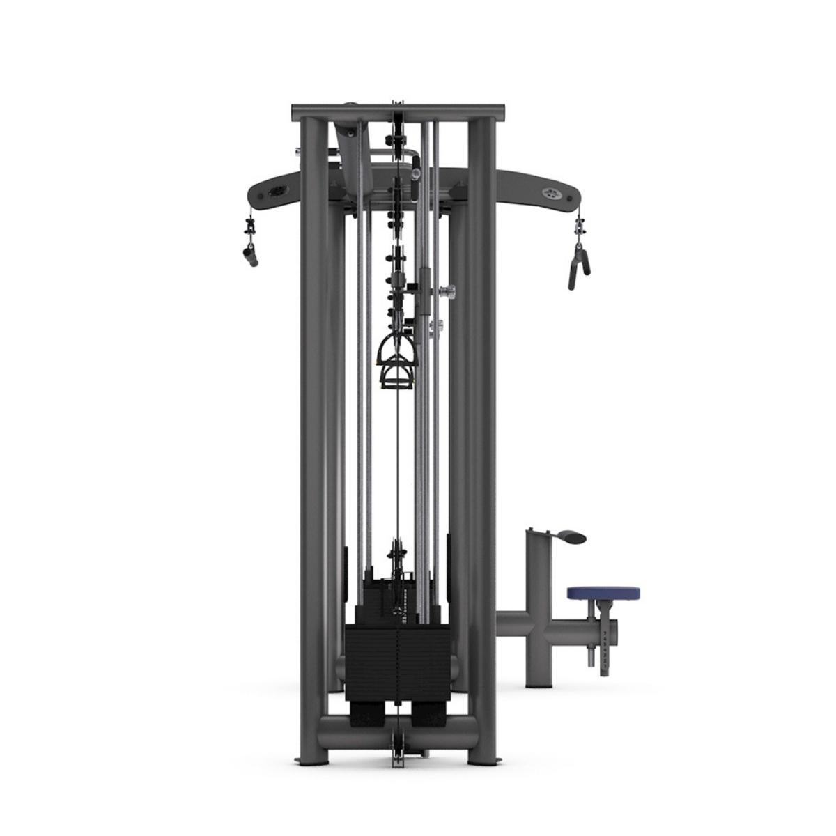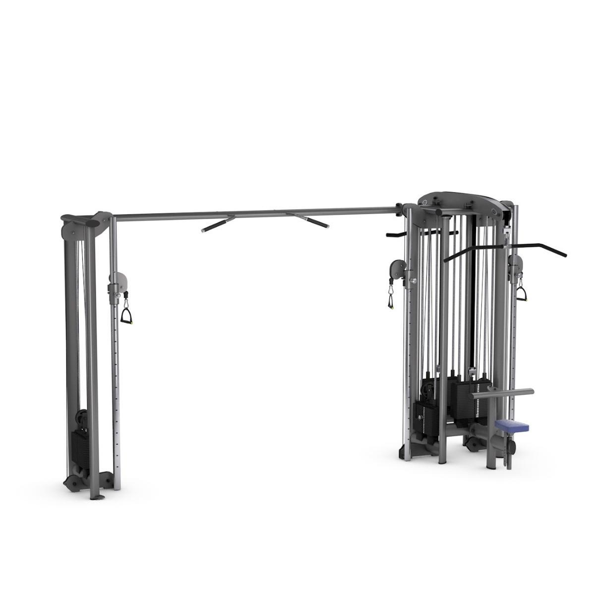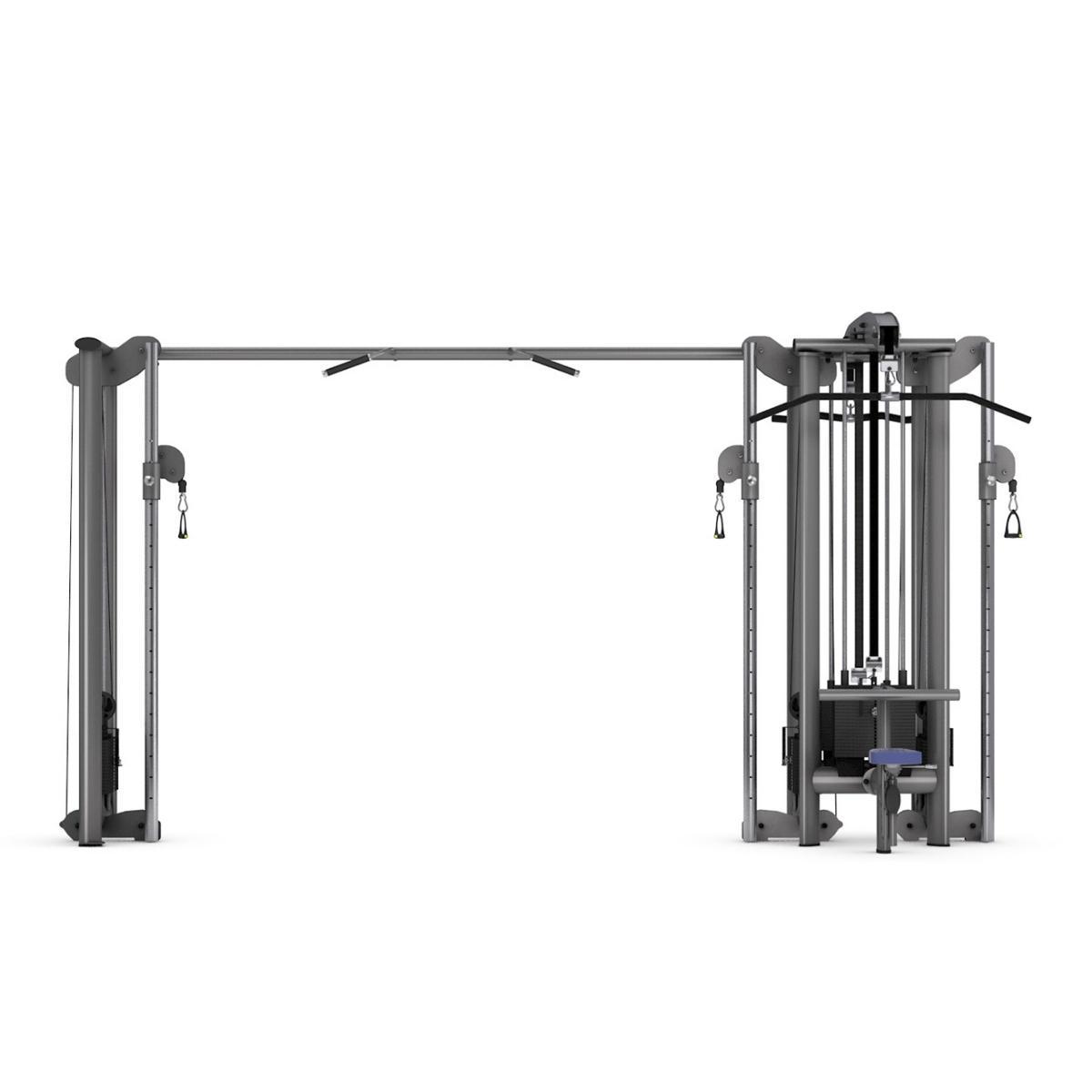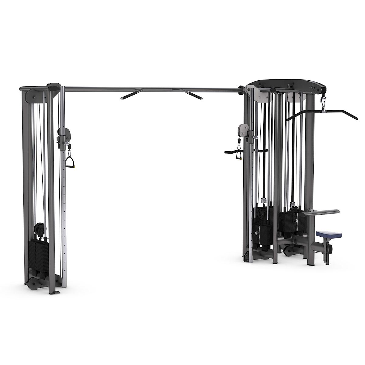 Šis 5 staciju trenažieris nodrošina daudzveidīgu un efektīvu spēka treniņu vairākiem lietotājiem vienlaikus. Standarta aprīkojumā ietilpst regulējama augstuma krosa trenažieris, augšējā vilkne, bicepsa un tricepsa stacija, kā arī divas regulējamas apakšējās vilknes. Lielāks komforts tiek nodrošināts ar augstumā regulējamu sēdekli, regulējamu augšstilbu atbalstu un maināmām treniņu rokturu opcijām. Papildus stacijā ir integrēti satvērieni pievilkšanās vingrinājumiem.