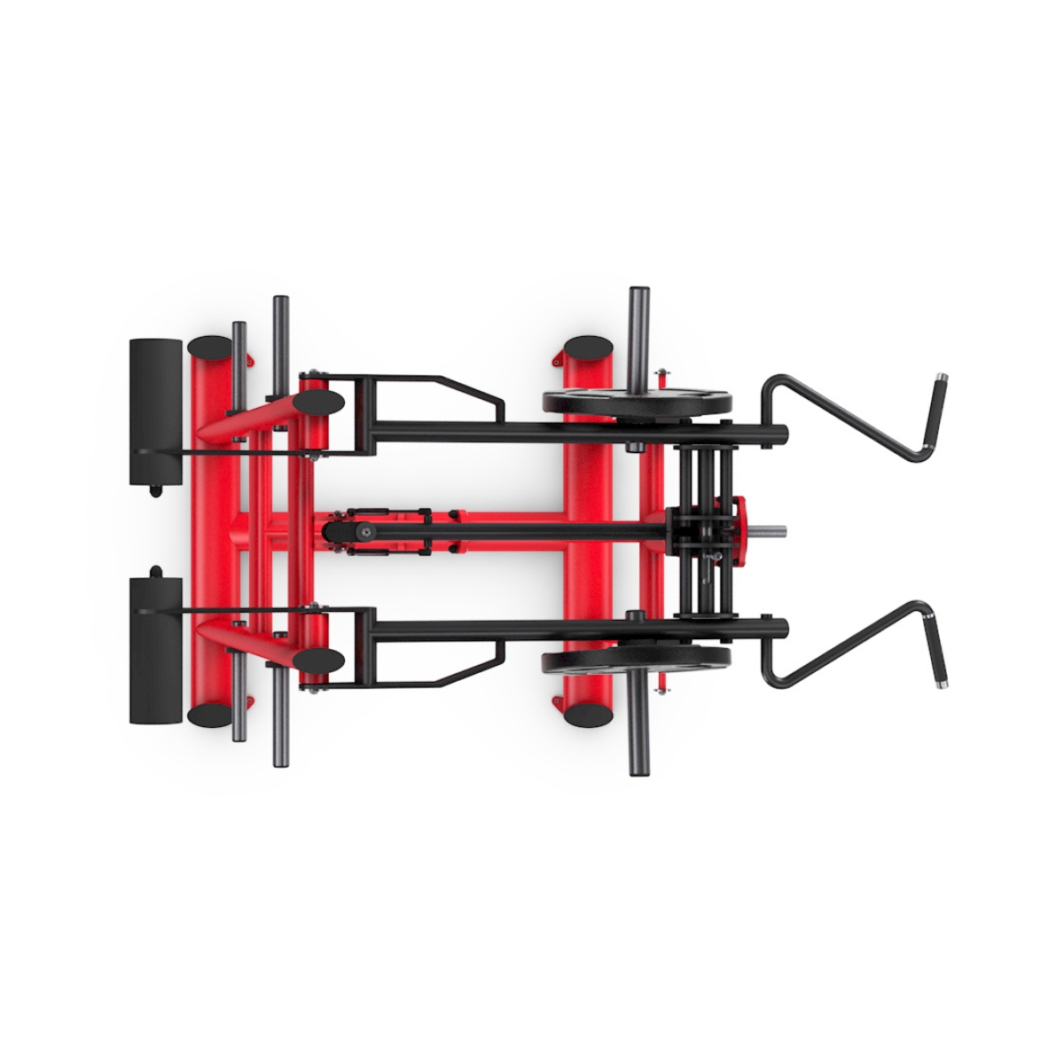 Gym80 Viking Press ir augstākās kvalitātes trenažieris ar svara disku uzlādi, paredzēts drošai un efektīvai muguras muskuļu trenēšanai. Aprīkots ar trīspakāpju kustību diapazona (ROM) regulēšanas mehānismu un ergonomiskām roktura pozīcijām, kas palīdz saglabāt optimālu treniņa stāju. Komplektā ir integrēti turētāji svara disku uzglabāšanai (piemēroti 50 mm diskiem).
