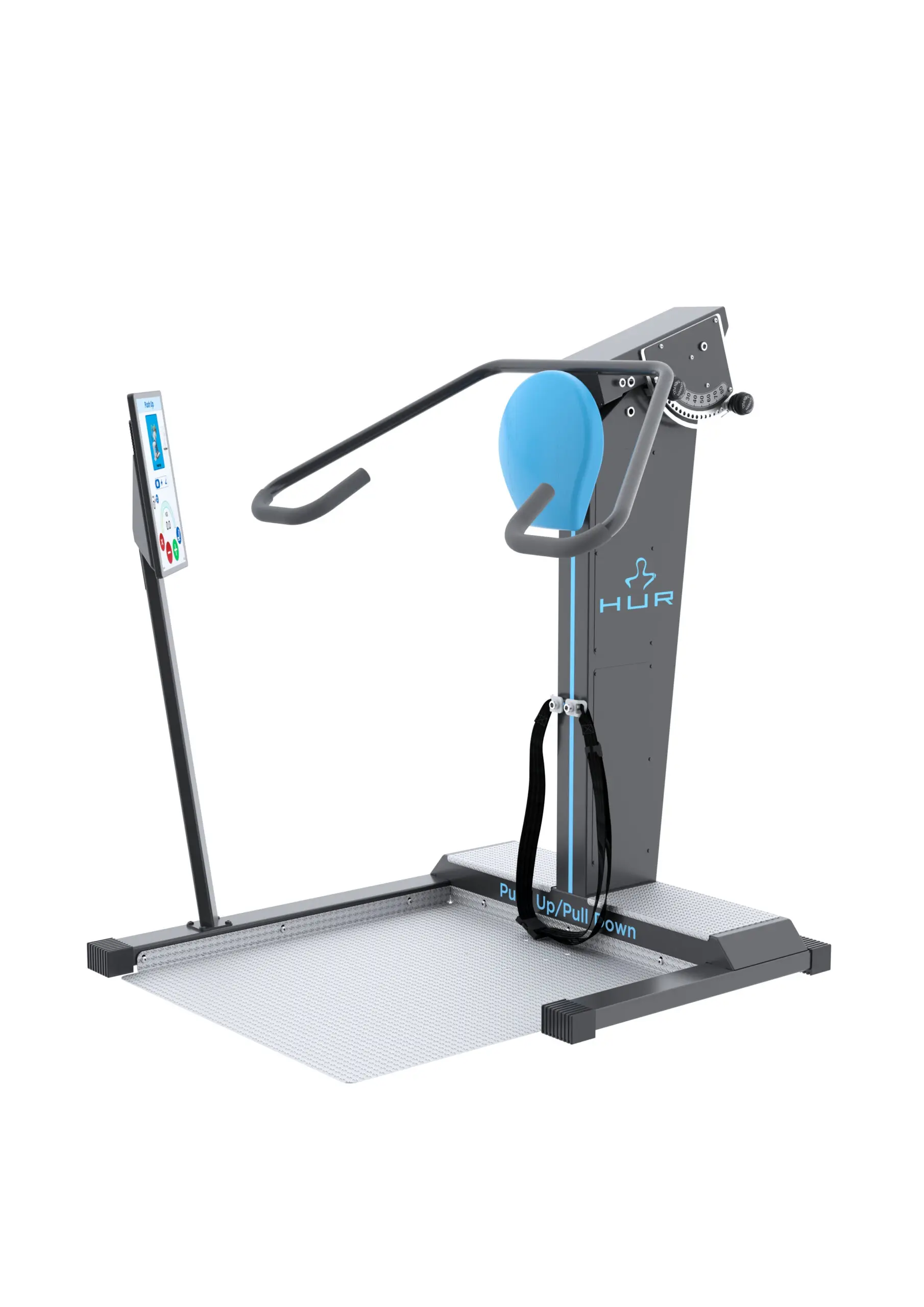 HUR SmartTouch divfunkcionālā pieejamā Push Up / Pull Down trenažiera ierīce ir īpaši izstrādāta, lai cilvēki ratiņkrēslos varētu droši un patstāvīgi trenēt plecu un muguras muskulatūru. Ierīce ir aprīkota ar kustību amplitūdas ierobežotājiem un izometriskās testēšanas sensora pieslēgumu.