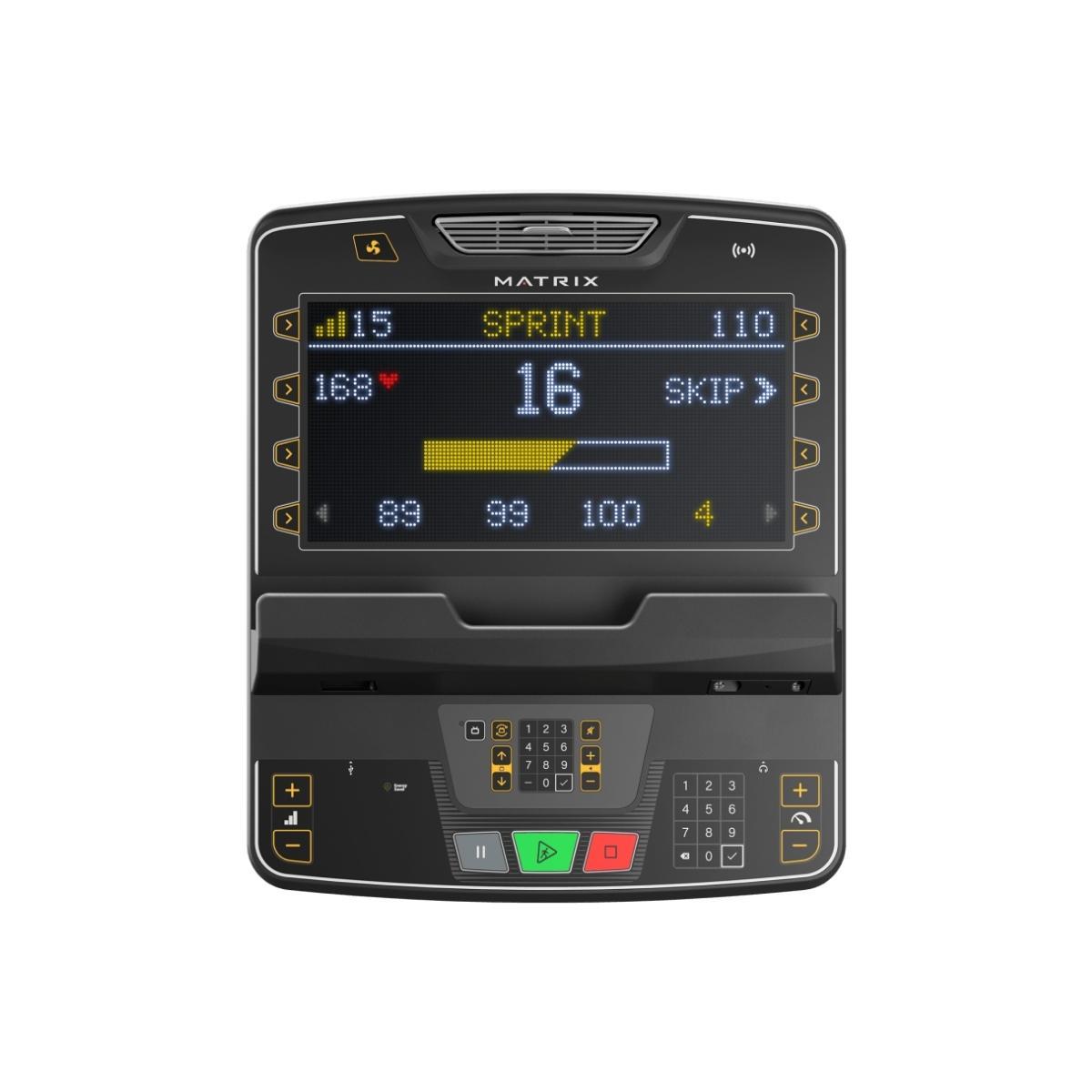 Konsoles aprīkojums: Matrix Premium LED konsole ar krāsainu, augstas izšķirtspējas displeju piedāvā intuitīvu lietošanu un skaidru treniņa vizualizāciju. Standarta funkcijās ietilpst Sprint 8, 5 km un 10 km treniņu programmas, kā arī iebūvēts ventilators un WiFi savienojums (Matrix savienojamības risinājumiem). Konsole ir savietojama ar visiem Performance, Endurance un Lifestyle sērijas trenažieriem.