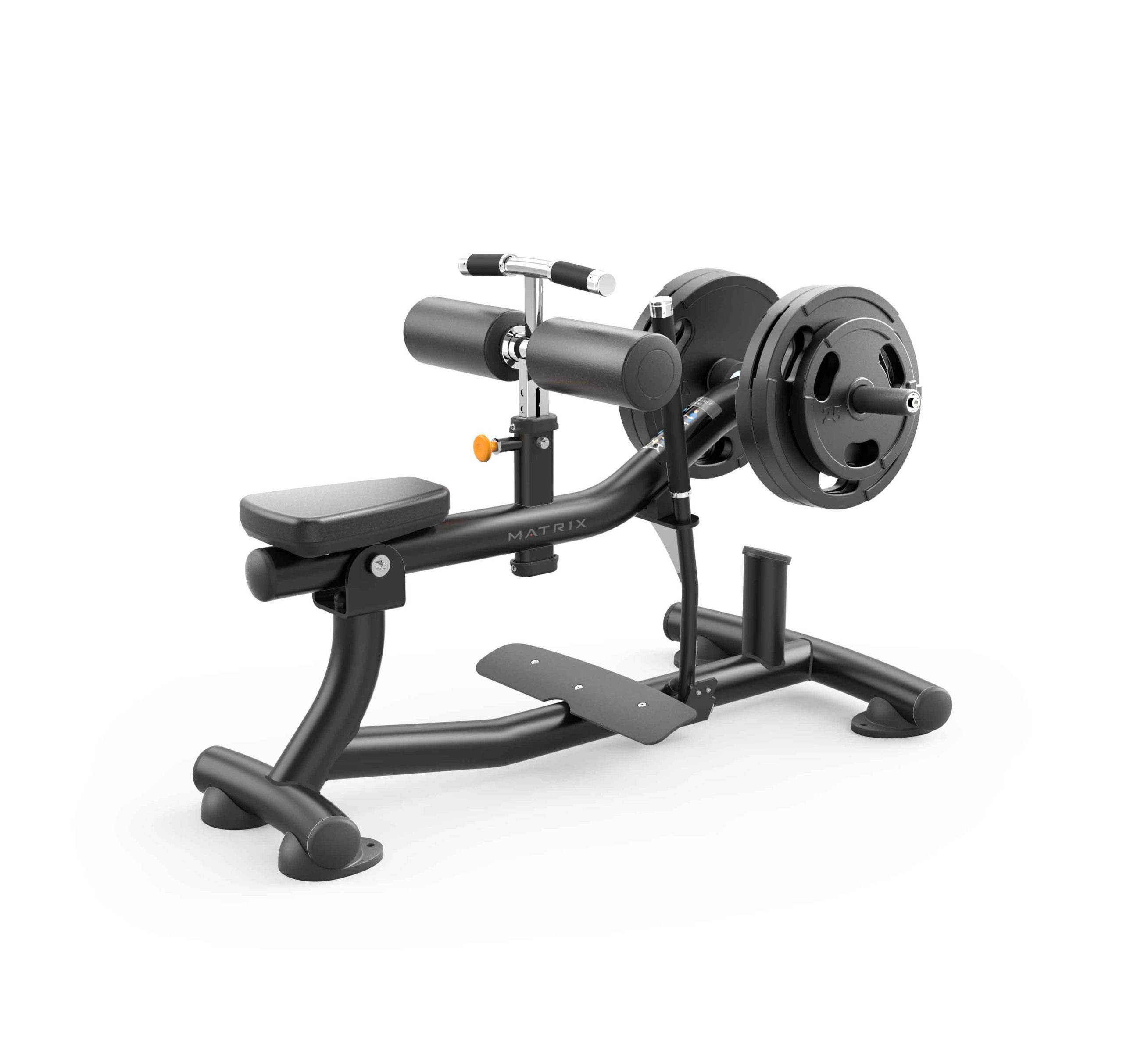 Matrix Magnum Seated Calf Raise trenažieris darbojas ar brīvo svaru uzlādi (svara diski tiek iegādāti atsevišķi), ļaujot lietotājam efektīvi trenēt ikrus ar lielu slodzi.