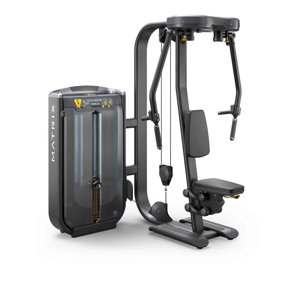 Matrix Ultra aizmugurējo plecu un krūšu muskuļu trenažieris (pec deck) ar integrētu svaru sistēmu ir premium klases risinājums sporta zālēm, viesnīcām un rehabilitācijas centriem. Trenažieris apvieno divas funkcijas – krūšu muskuļu pievilkšanu (pec deck fly) un aizmugurējo plecu trenēšanu (reverse fly), nodrošinot daudzveidīgu un efektīvu treniņu.