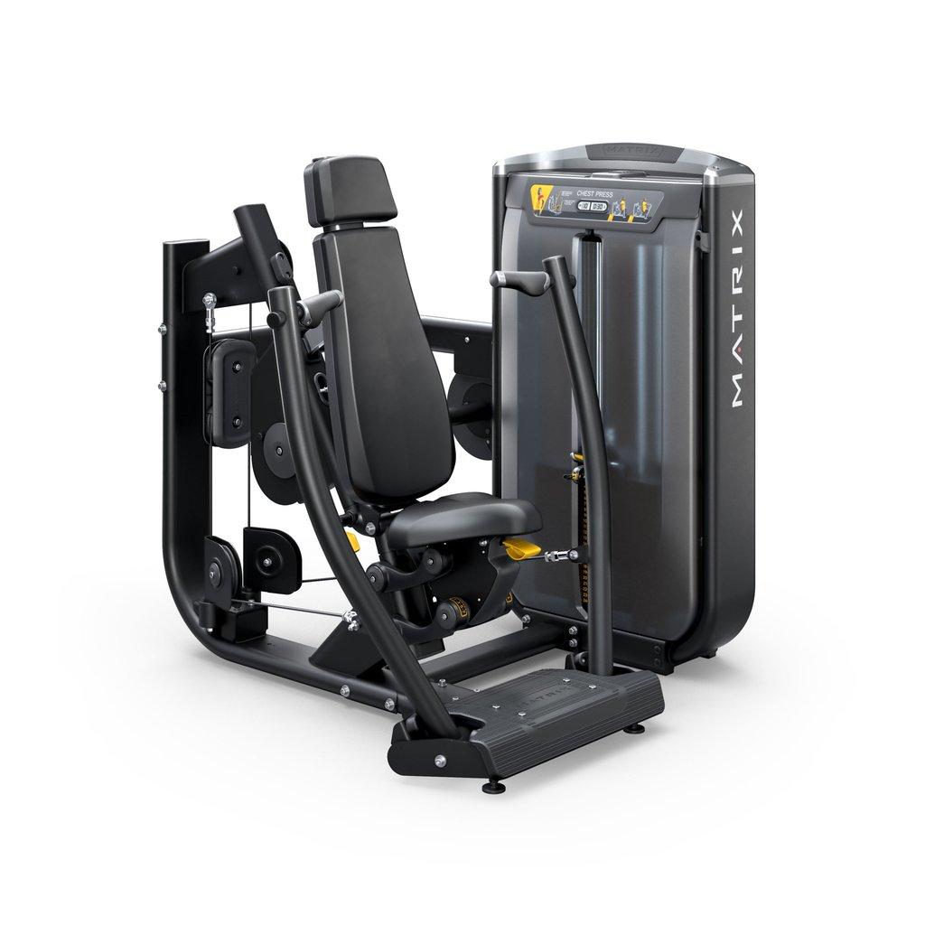 Matrix Ultra krūšu spiešanas trenažieris ar integrētu svaru sistēmu ir premium klases aprīkojums sporta zālēm, viesnīcām un rehabilitācijas centriem. Tas paredzēts krūšu muskuļu stiprināšanai, vienlaikus iesaistot arī plecu un tricepsu muskuļus. Dabiskā kustību trajektorija un augstākās kvalitātes biomehānika nodrošina komfortablu un efektīvu treniņu.