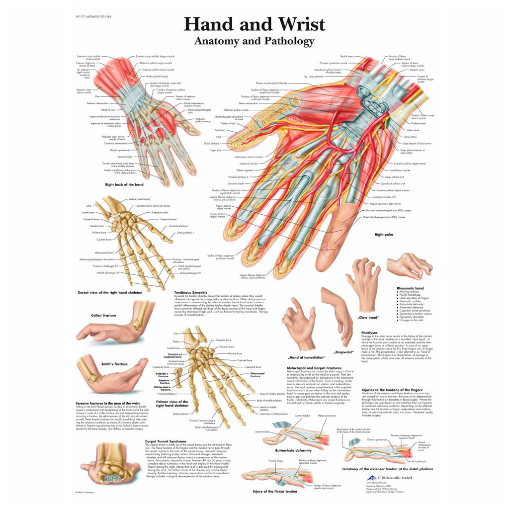 - Anatomiskais plakāts plaukstas un plaukstas locītavas uzbūvei