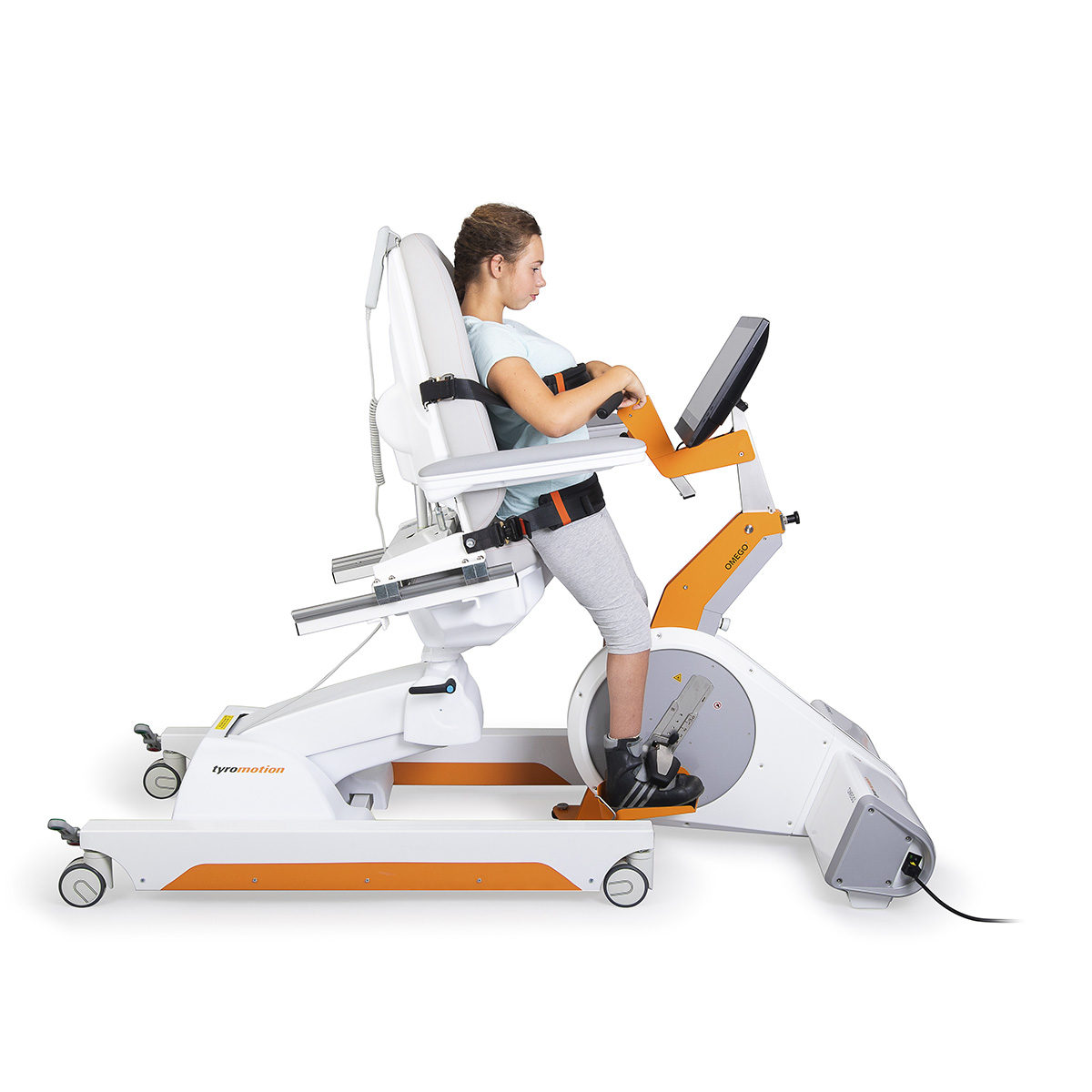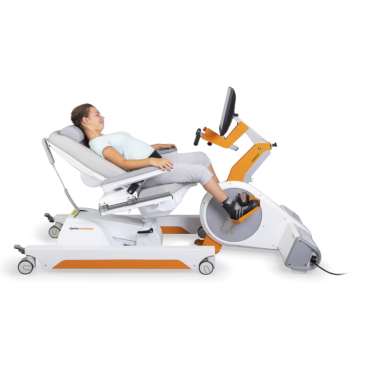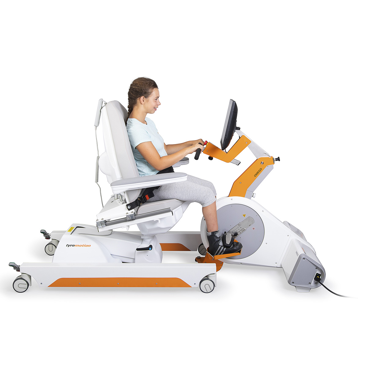 Tyromotion Omego Plus ir ar diviem neatkarīgiem motoriem aprīkots rehabilitācijas trenažieris, kas paredzēts staigāšanas spēju uzlabošanai un kāju kustību funkciju atjaunošanai. Iespējams trenēt vienu vai abas kājas vienlaikus, un kustību leņķus un amplitūdu var pielāgot individuāli katram lietotājam. Trenažieris nodrošina gan ritmisku, gan spēka treniņu, kā arī atsevišķus vingrinājumus potītes funkcijas uzlabošanai.