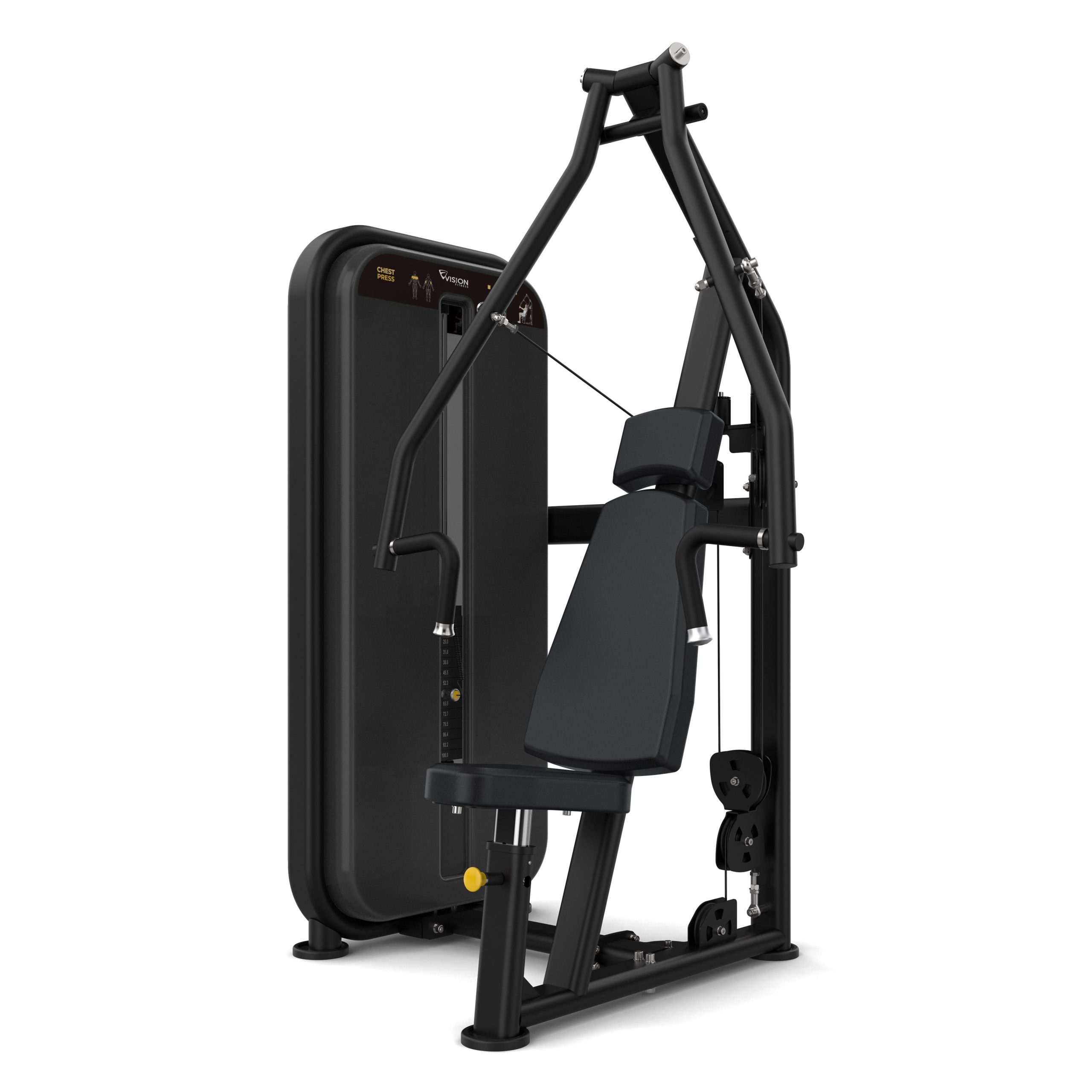 Vision Fitness spēka trenažieris spiešanai no krūtīm ir paredzēts krūšu muskuļu, tricepsu un priekšējo plecu trenēšanai. Aprīkots ar 5 pozīcijās regulējamu sēdekli un ergonomiski izstrādātu atzveltni, tas nodrošina ērtu un drošu treniņu pozīciju. Ideāli piemērots uzņēmumu, pašvaldību, dzīvojamo ēku un komerciālajiem sporta klubiem.
