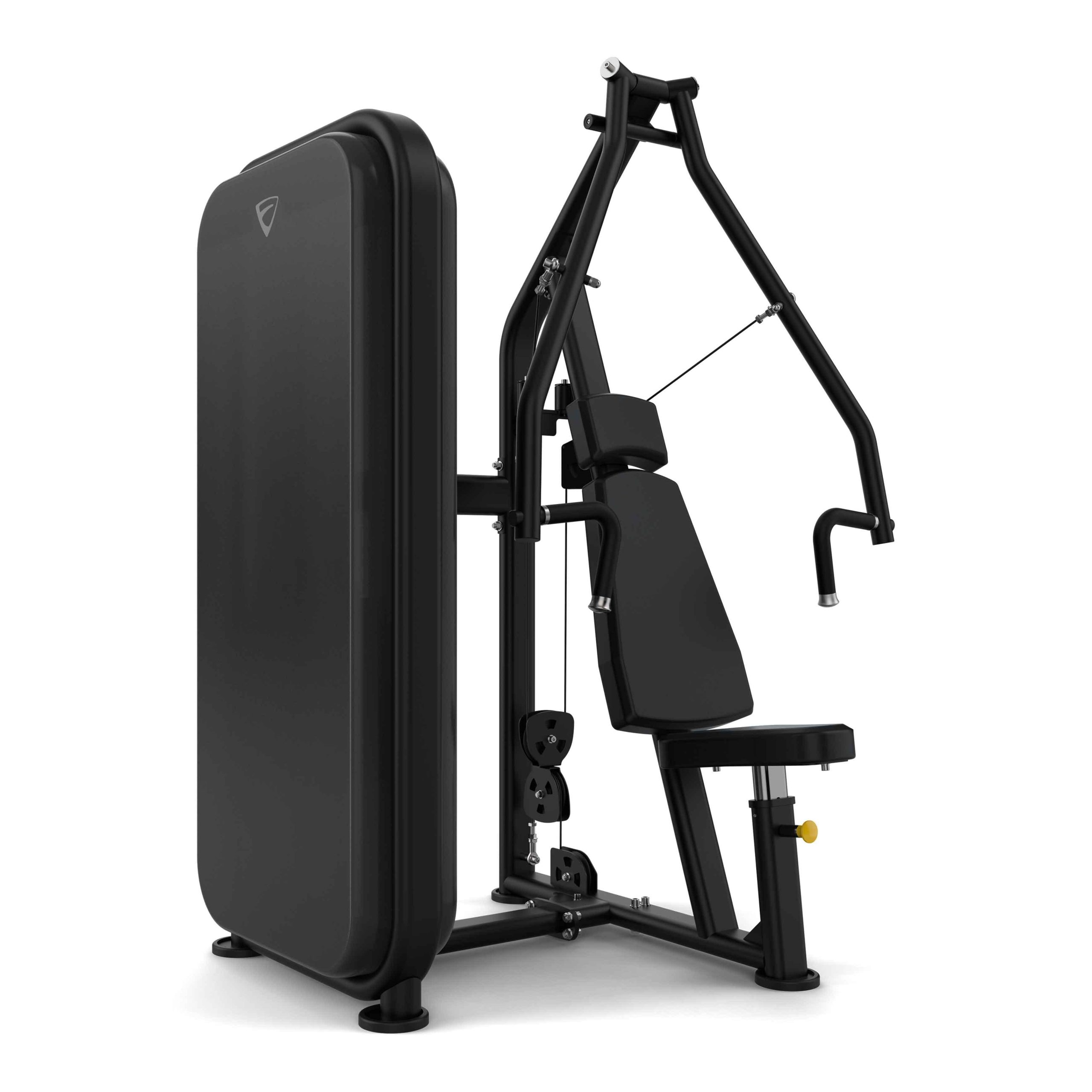 Krūškurvja, tricepsa un priekšējo plecu muskulatūras stiprināšanas trenažieris ar integrētu svaru sistēmu.