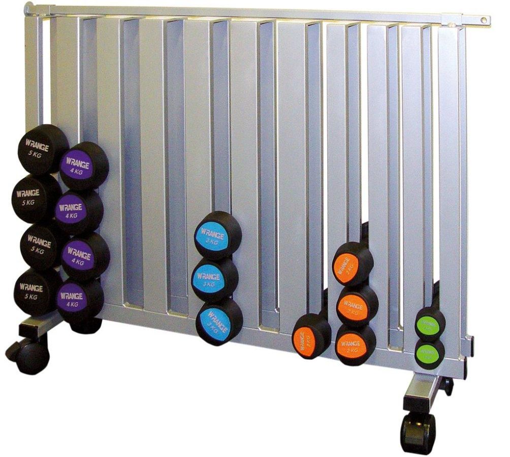 Metāla hanteļu statīvs, paredzēts Wrange Pro vinila hantelēm. Statīvam ir 12 cm roktura platums, riteņi ērtākai pārvietošanai un bloķējams mehānisms drošībai. Modelis ir divu līmeņu un to iespējams pagarināt.