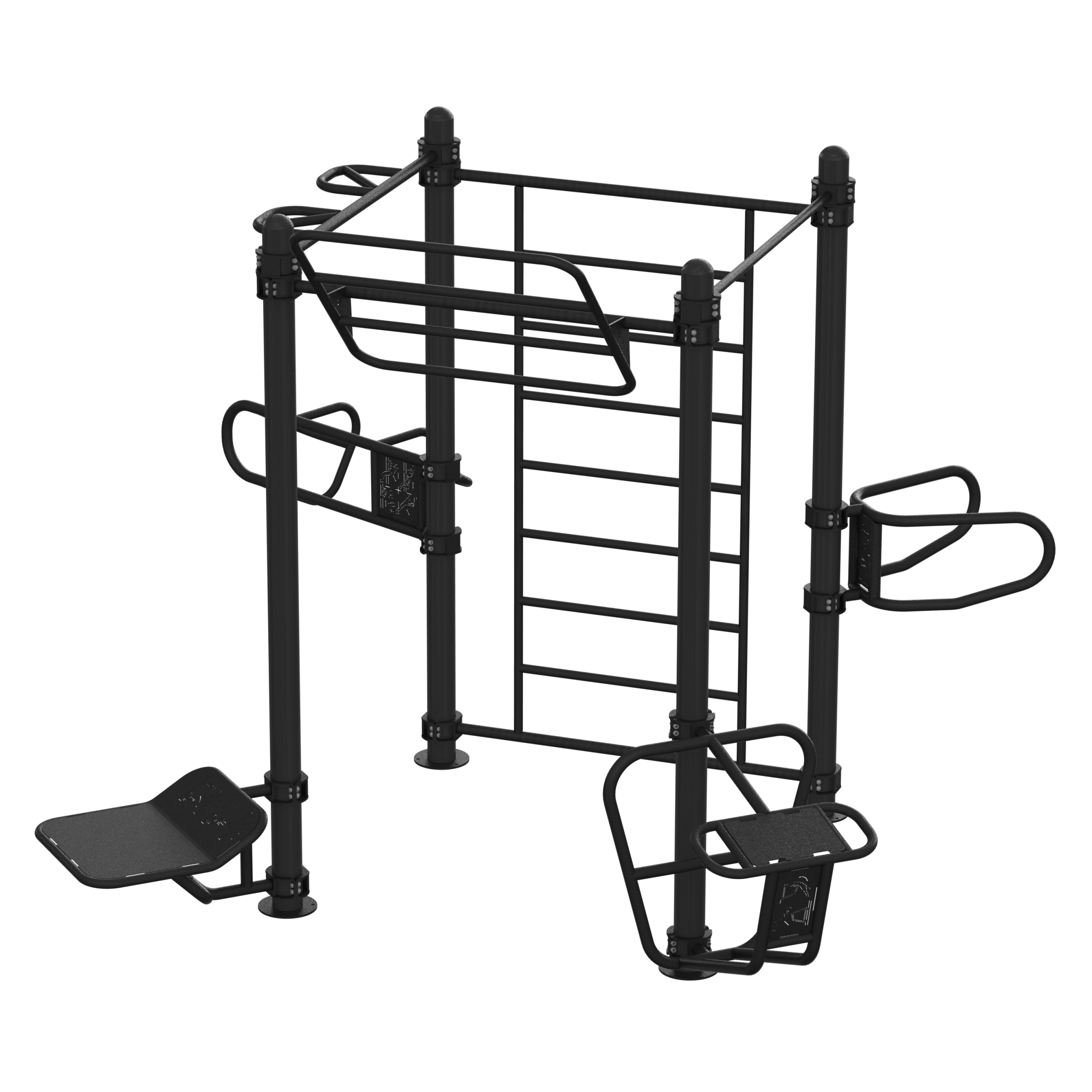 Melnā Wrange Pro Line āra treniņu stacija ir paredzēta funkcionālajiem treniņiem un ļauj vienlaikus trenēties līdz astoņiem lietotājiem. Stacija ir izgatavota no izturīga pulverkrāsota tērauda, piemērota lietošanai ārpus telpām. Komplektā ietverti attēlā redzamie piederumi, un ir iespēja pielāgot aprīkojumu individuālām vajadzībām.