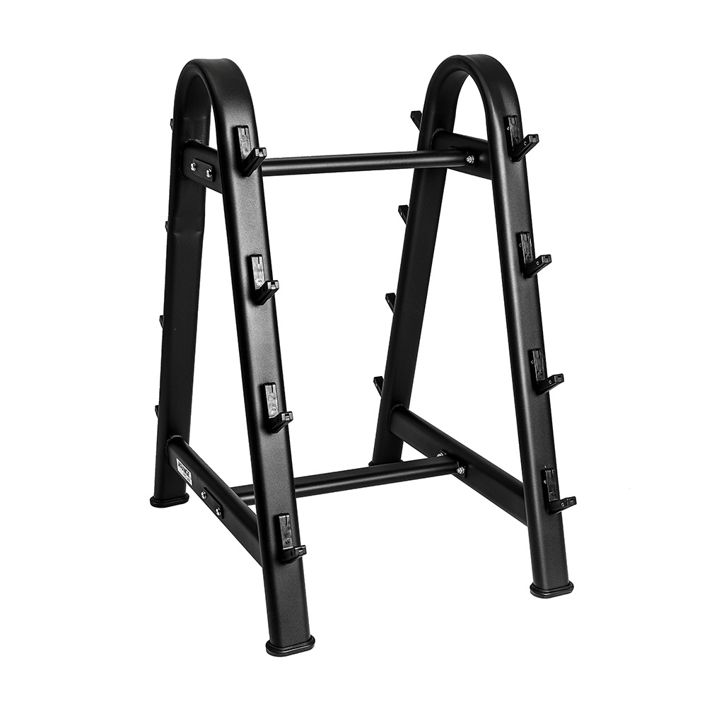 Matēti melns statīvs līdz 10 fiksētajiem svaru stieņiem.