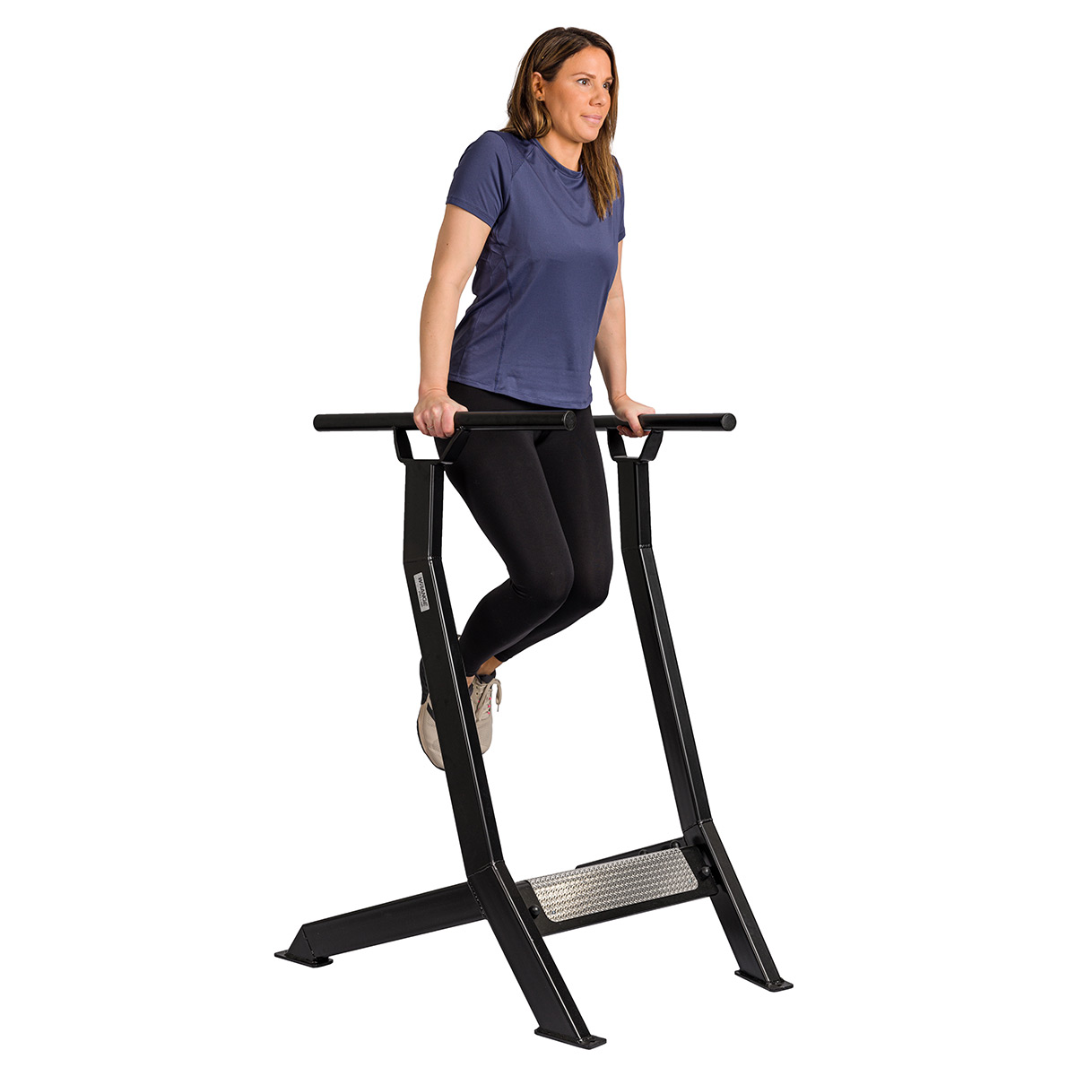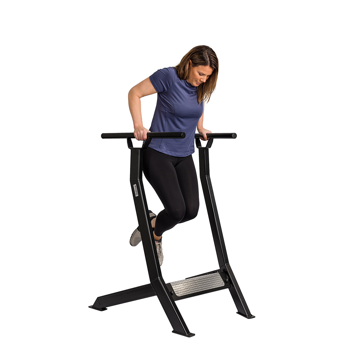 Statīvā iespējams veikt dipu vingrinājumus ar šauru vai plašu tvērienu, ļaujot mainīt slodzes fokusu starp tricepsiem un krūšu muskuļiem. Lai palielinātu treniņa intensitāti, pie statīva var piestiprināt pretestības gumijas. Drošu un ērtu uzkāpšanu nodrošina integrēta pakāpiena platforma.