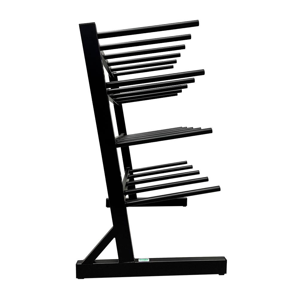 Beidz bumbas turēt uz grīdas – ar šo statīvu tās būs kārtīgi un droši izvietotas. Statīvs ir ideāli piemērots sporta zālēm un grupu nodarbību telpām, jo ļauj ietaupīt vietu un uzturēt aprīkojumu kārtībā. Konstrukcijā ir 4 līmeņi: augšējā ar 6 turētājiem un pārējās ar 5 turētājiem katrā. Viena turētāja dziļums ir 55 cm, kas nodrošina vietu lielam svaru bumbu daudzumam.