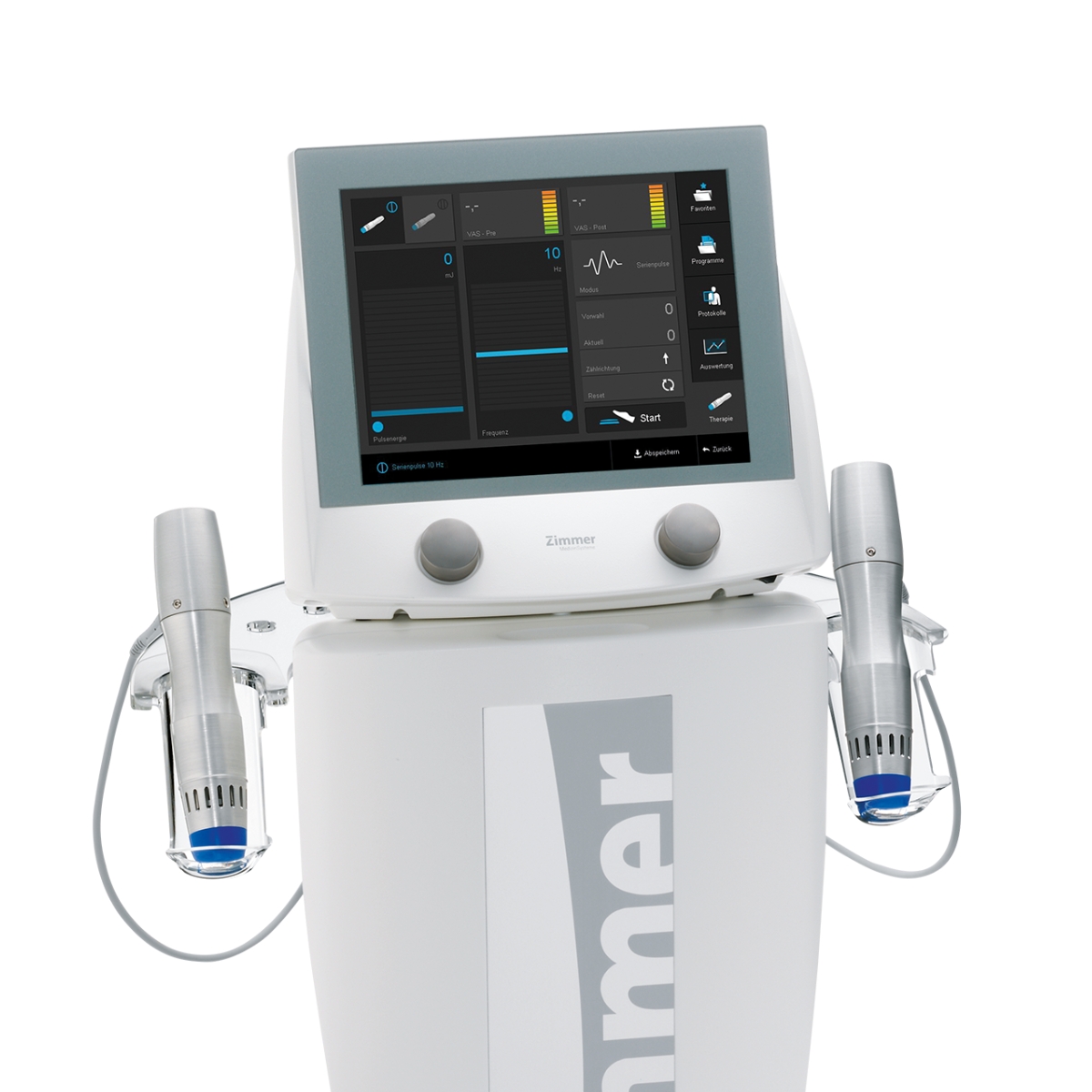 Zimmer enPuls Pro ir profesionāla radiālā triecienviļņu terapijas ierīce, kas paredzēta mīksto audu sāpju mazināšanai, vielmaiņas stimulēšanai un audu atjaunošanas veicināšanai. Tā izmanto elektromagnētisku impulsu tehnoloģiju, kas nodrošina precīzu un efektīvu terapiju ar minimālu diskomfortu pacientam. Divi terapijas uzgaļi ļauj vienlaikus apkalpot divus pacientus.